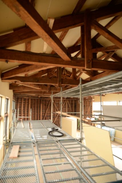 この度、予定外の屋根の葺き替え工事をする事になり、先日より屋根瓦の撤去を行ったところ、ボロボロになった野地板の隙間から、溜まりに溜まった散りや埃が、それこそ山になる程建物の中に降ってきました。