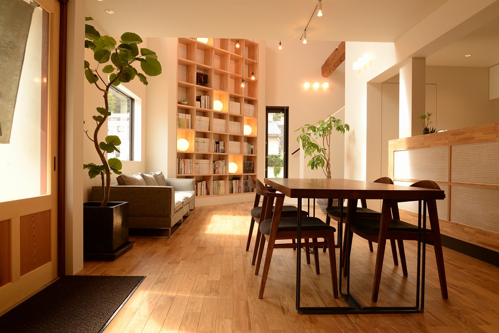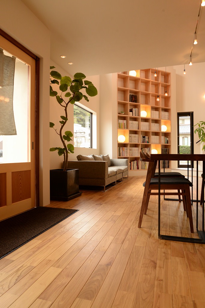 そこで、今日は、オーナー様(お施主様)をはじめ、皆さまに本をゆっくりご覧いただけるよう、ソファーを設置しました。