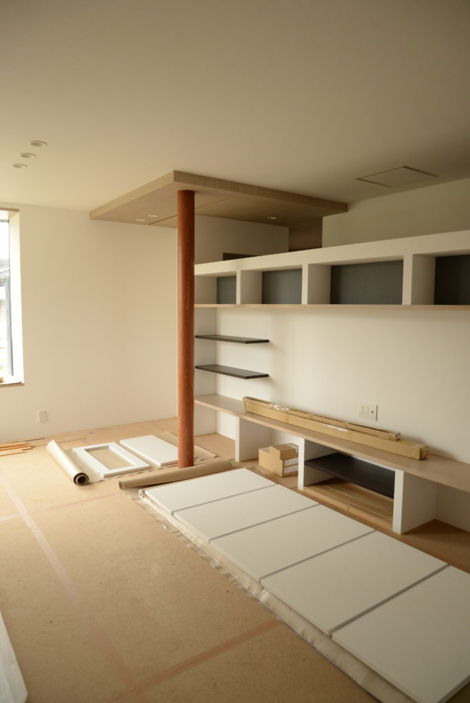 (仮称)西堀町の家は、クロス戸(造作戸)にクロスを貼っているので、現場確認に向かいました。