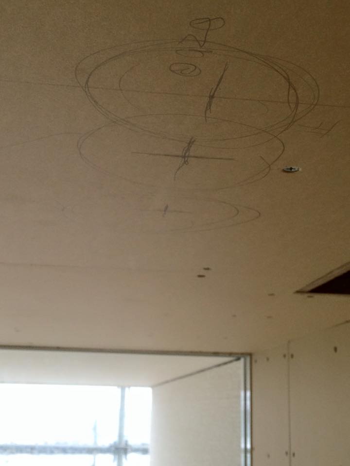 今回、その悩みへの決定をお伝えするために、僕も天井に墨出ししてきました。