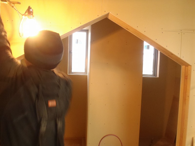 今日は平景の家の照明器具取付け位置などの確認を、現場にて行いました。