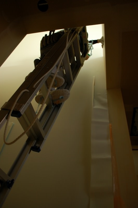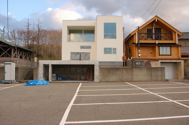 立体感。 2016年02月10日 平景の家 ようやく足場が撤去され、ファサード(外観)が見やすくなりました。 今日は、内装工事真っ最中の平景の家の現場に、段取りの確認などの為にやってきました。 今日は天気も良く、白い外壁が空の輪郭をくっきりさせていました。 現場に行くと階段の吹抜けの部分のクロスを貼ってる最中でした。 クロスを貼ると明るくなりますし、立体感がすごく明確になります。 空間や視界がクッキリしてきて、なんだかワクワクしてくるのは、僕だけでしょうか? 仕上りがとても楽しみです(笑)。