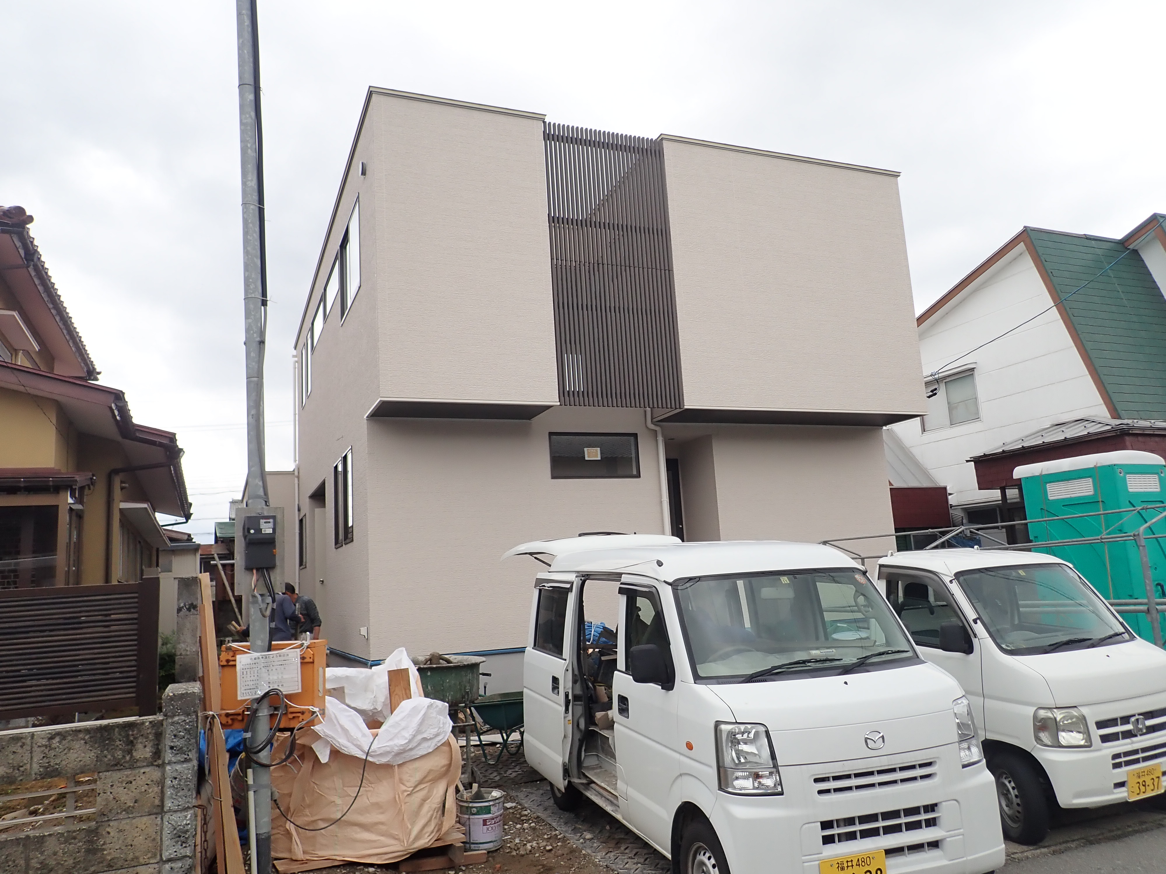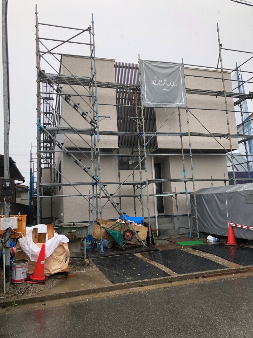 足場が無くなりました! 2019年07月12日 双幸の家 足場が無くなりました! サッシとサッシの間の柱状の部分が、壁から面落ちしています(下がっています)。 これは水平方向のディテールを強調する為なんです。 チョットした事なんですが、それが印象を違って感じさせるのです。 仕上りが楽しみです!