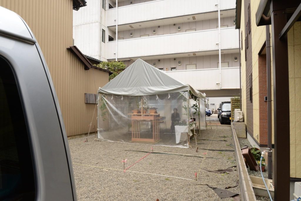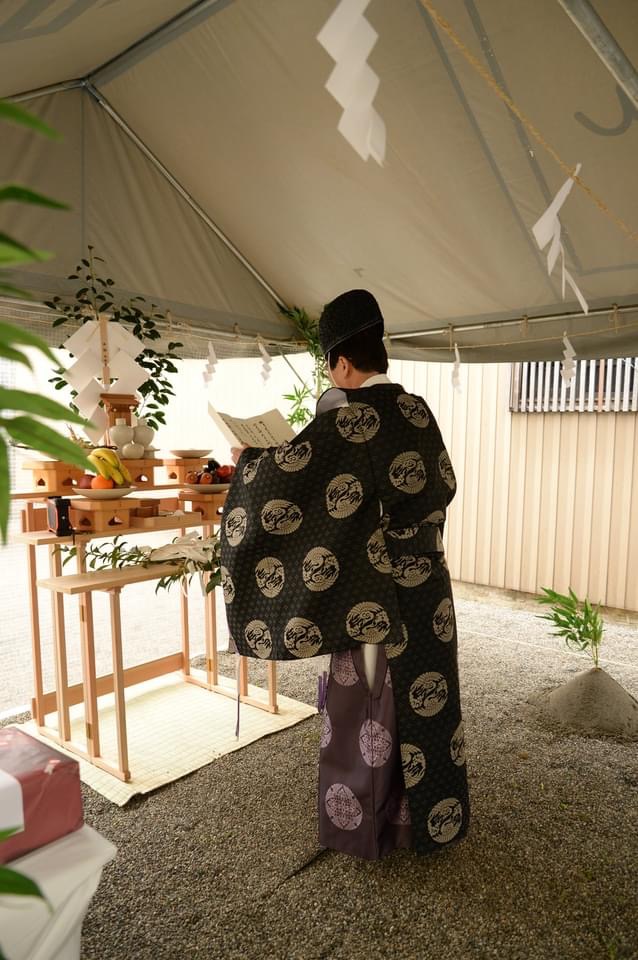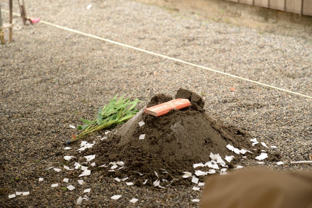 地鎮祭とは、工事をする前に土地の神様などに土地を触り建物を建設するお許しを得、工事の安全などを祈願する儀式を言います。