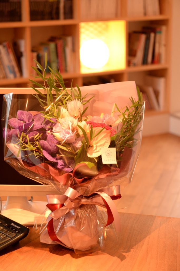 また今日は、オーナー様が経営されているお花屋さんにて、贈り物の花束を作っていただきました。