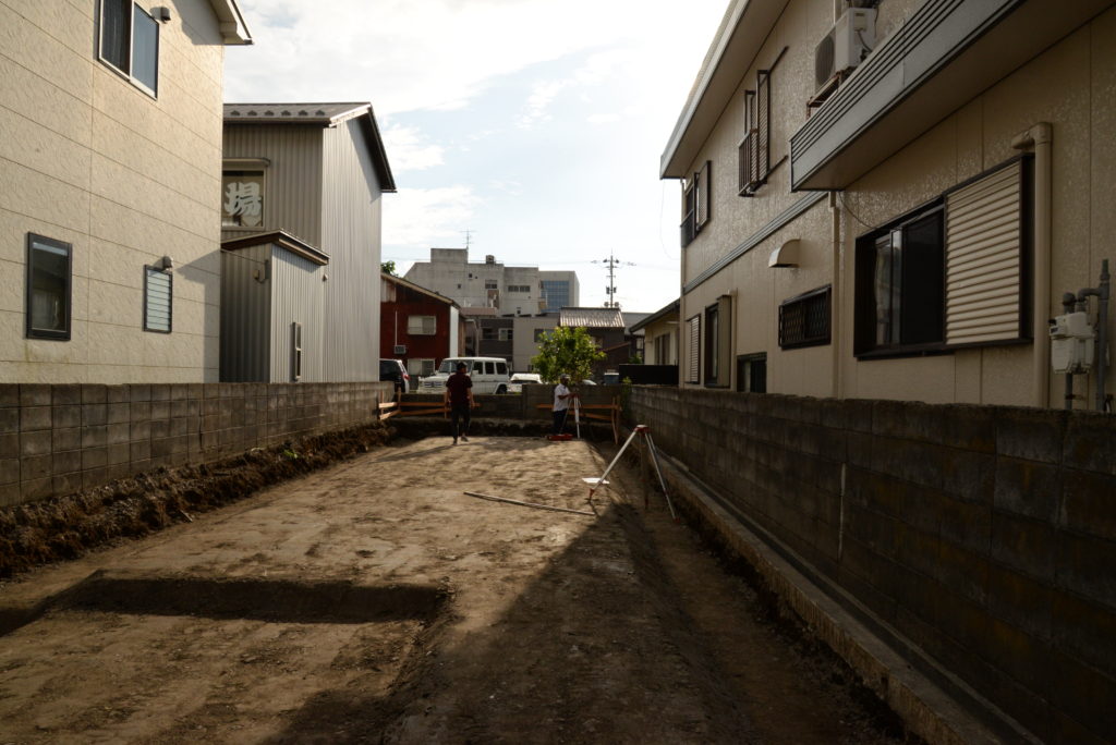 地盤改良工事が完了して、直ぐに今度はスタンバイしていただいていた基礎工事業社さんと、丁張を行いました。