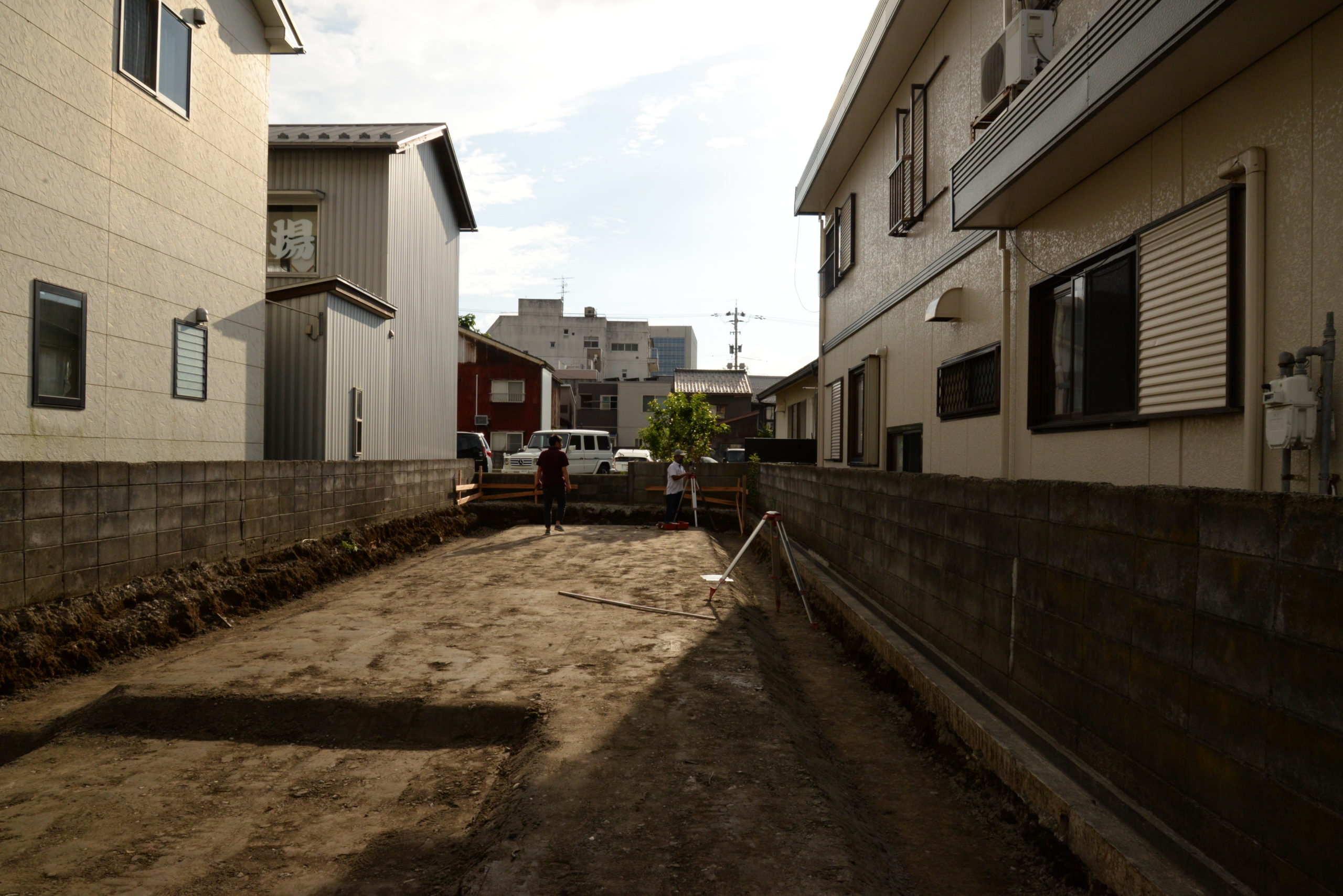 この張った糸が、建物などの基準となる為、とても重要な段取りです。