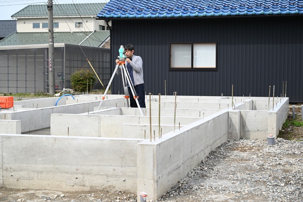 建物の基準になる線を引くので、とても重要な作業で、緊張を強いられる作業です。