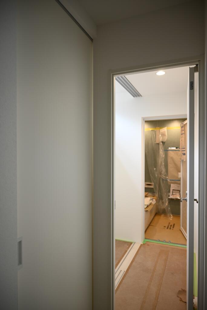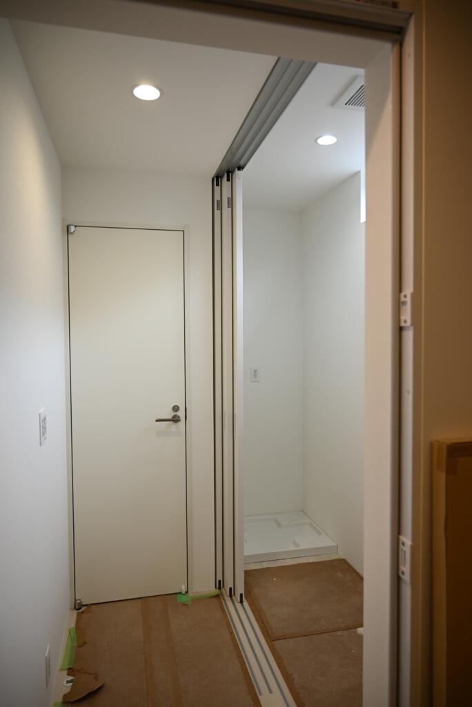 脱衣室の一方の壁は建具になっており、開けるとその先にランドリールームが配置されています。