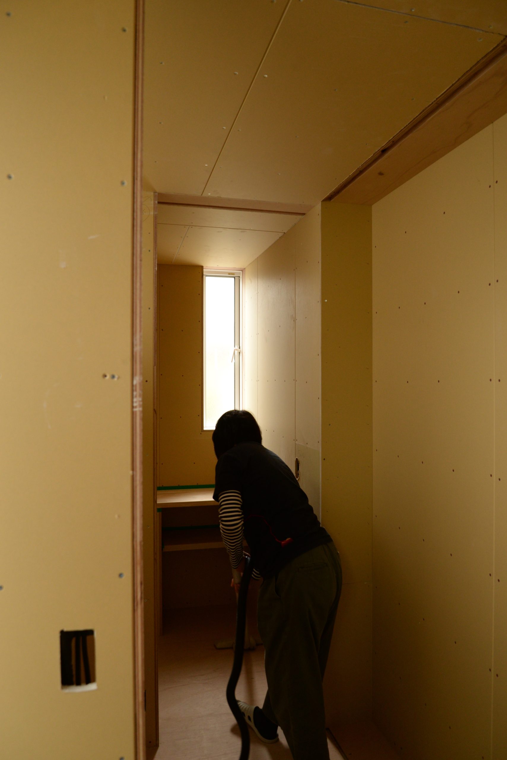 内部の仕上げ工事がスタートするにあたり、掃除機をかけました。