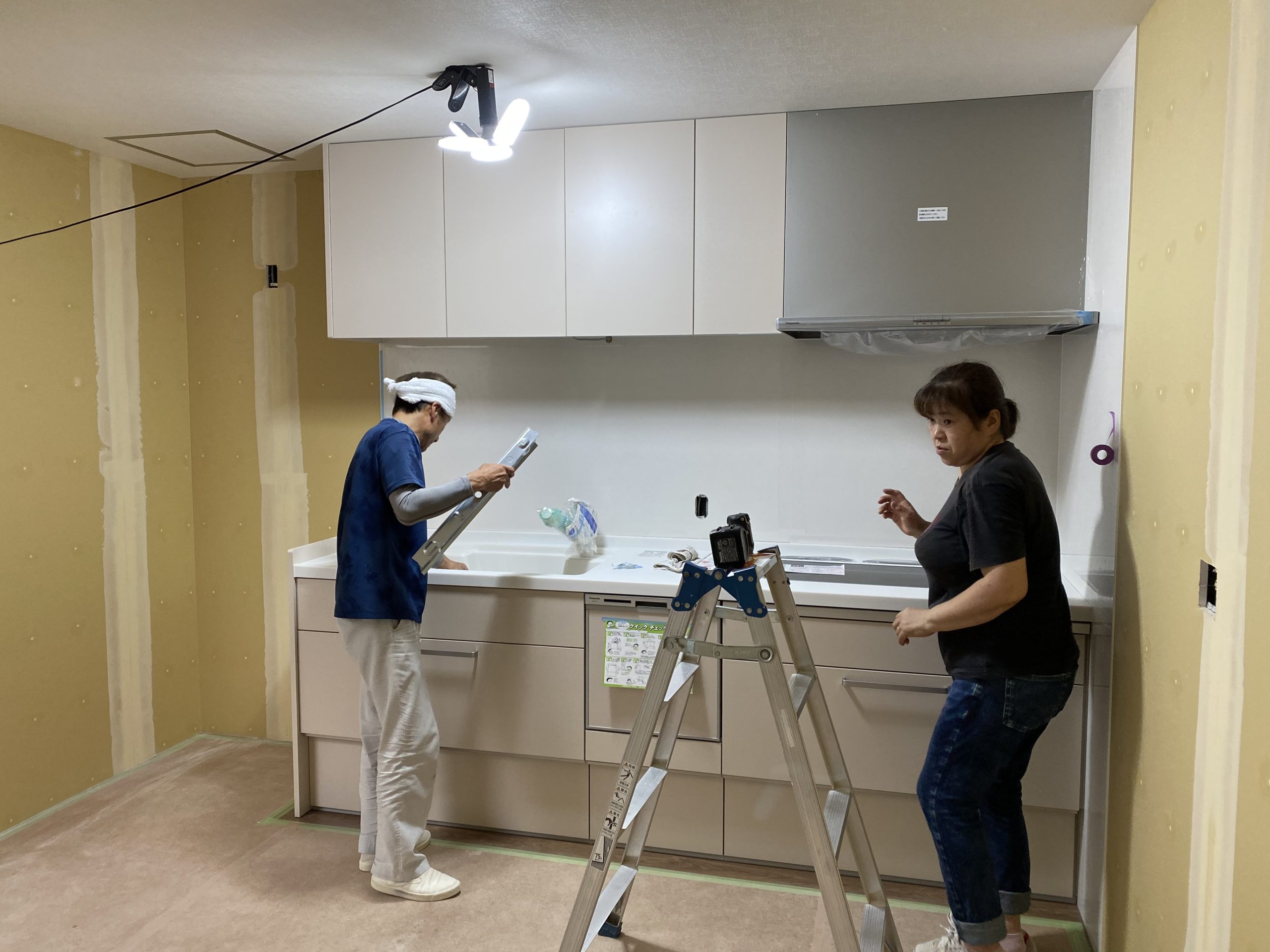 次は、再度、(仮称)春日2の家に戻り、キッチンの施工の進行状況を確認。