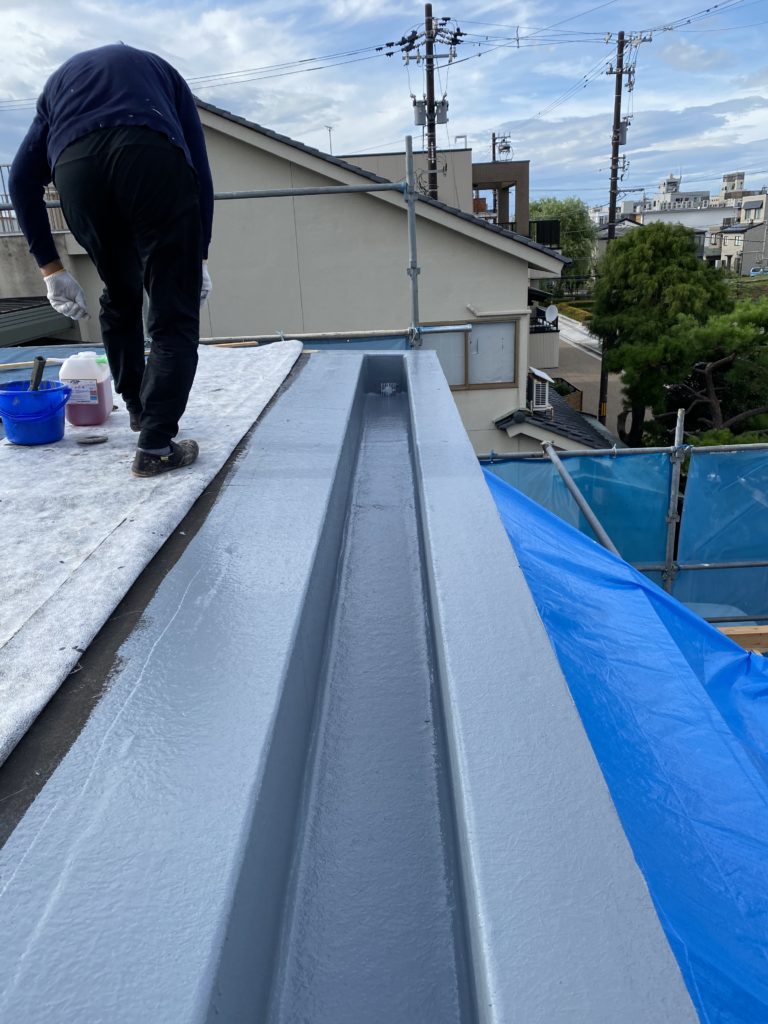 (仮称)宝永の家は、箱樋の防水工事を行なっていました。